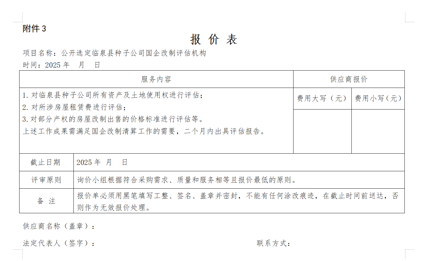 附件3:评估机构报价表